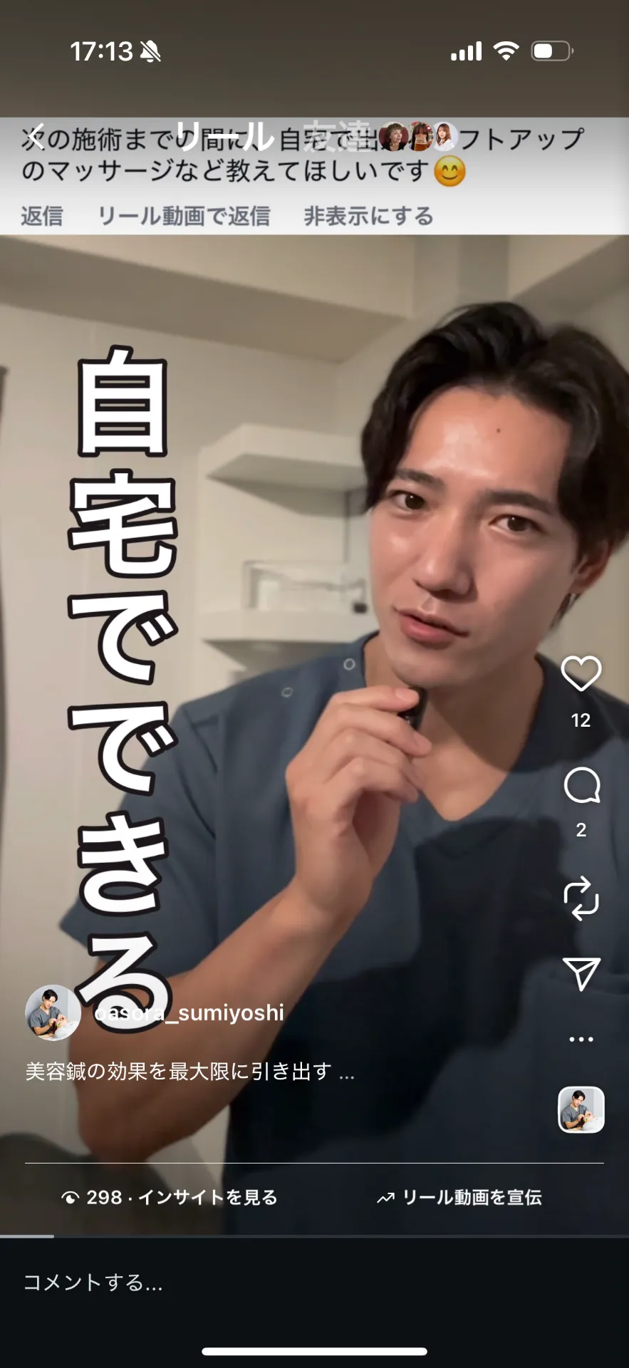 美容鍼して、次回の施術までリフトアップをより、維持できるセルフケア動画です◎