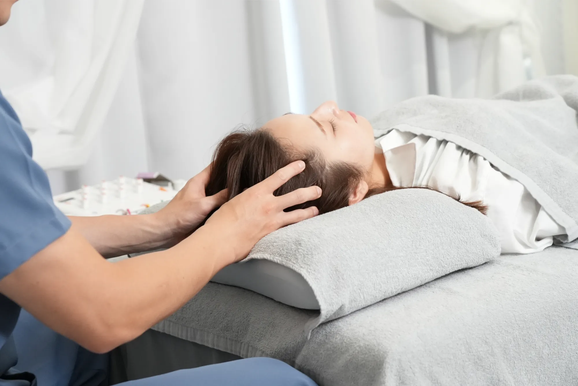 コンセプト CONCEPT落ち着いた空間で国家資格を持つ施術者が、一人ひとりのお悩みに対して真摯に向き合い、美容と健康の両面から丁寧にケアいたします。小顔やたるみ、長引く肩こりに困った腰痛、眼精疲労や頭痛まで…